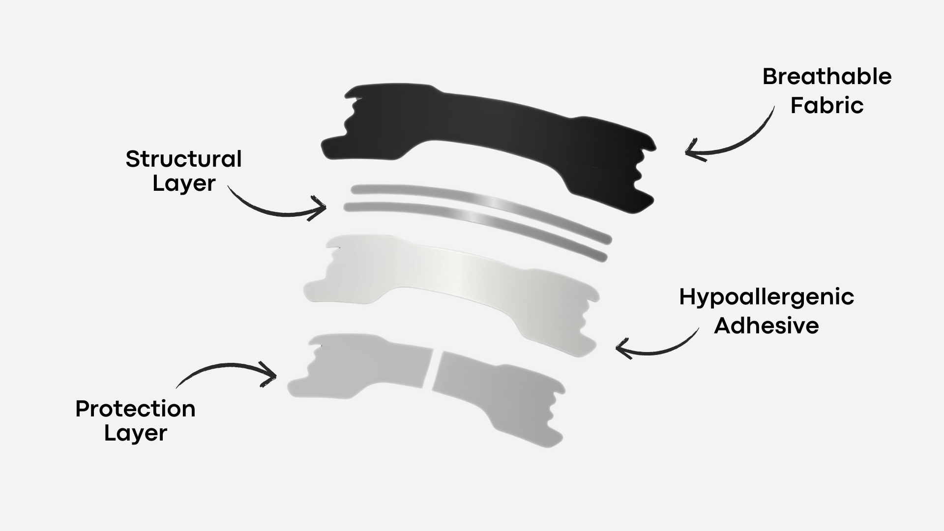 Our nose strips are designed with a premium four-layer construction to ensure maximum comfort and performance.