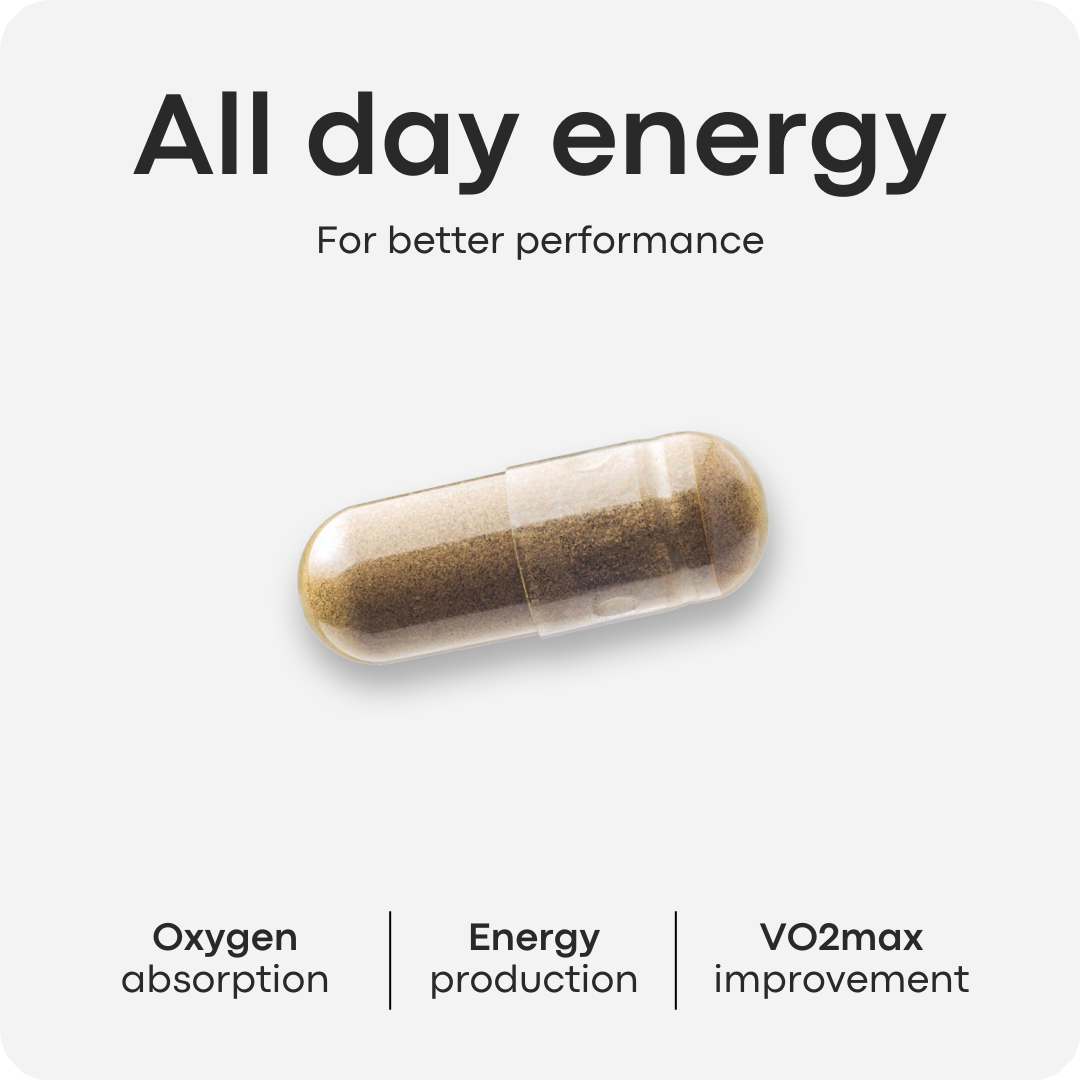 Best time to take: Morning, before exercise or work. Take 2 capsules daily for sustained energy and endurance throughout your day or workout.